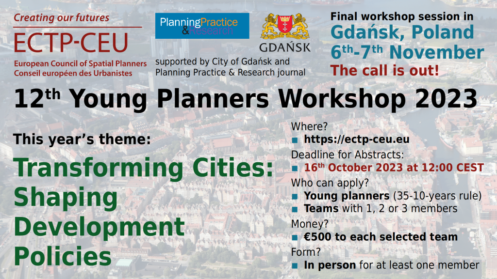 The Young Planners Workshop is an activity from the ECTP-CEU in frame of its objectives as Association that provides its members a common framework for planning practice, planning education and identifies, celebrates and rewards examples of good planning all over Europe.